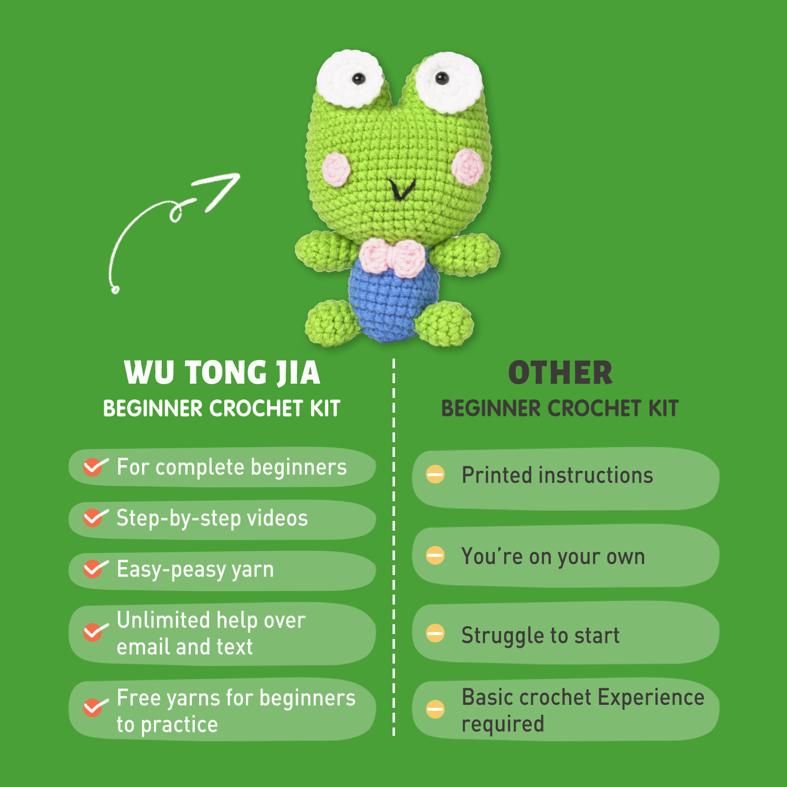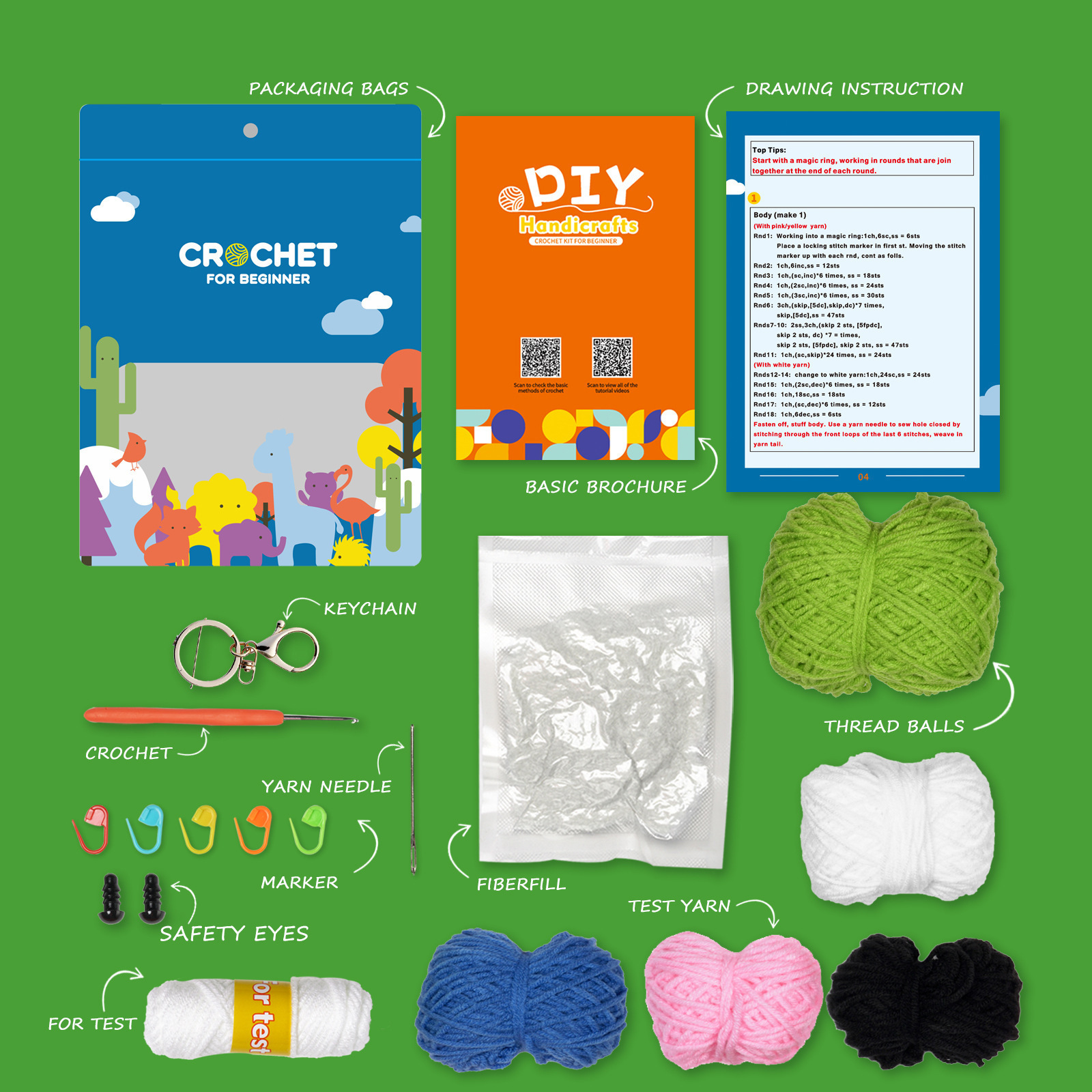 Our crochet kit is designed for everyone, from beginners to skilled crafters. It includes high-quality yarn, crochet hooks, and detailed patterns. The comprehensive design helps you understand the basics while encouraging creativity. Because everything you need is in one package, you can start your crocheting journey immediately. This kit not only saves you time but also reduces the hassle of searching for materials separately!