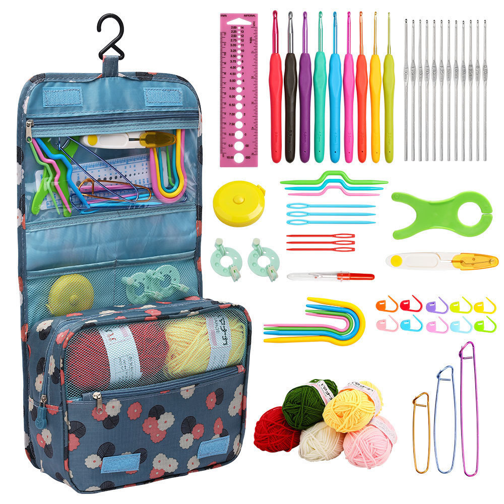 Complete Crochet Kit: 130-piece comprehensive set with diverse tools for knitting and sewing projects.