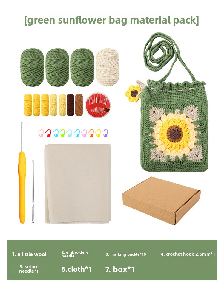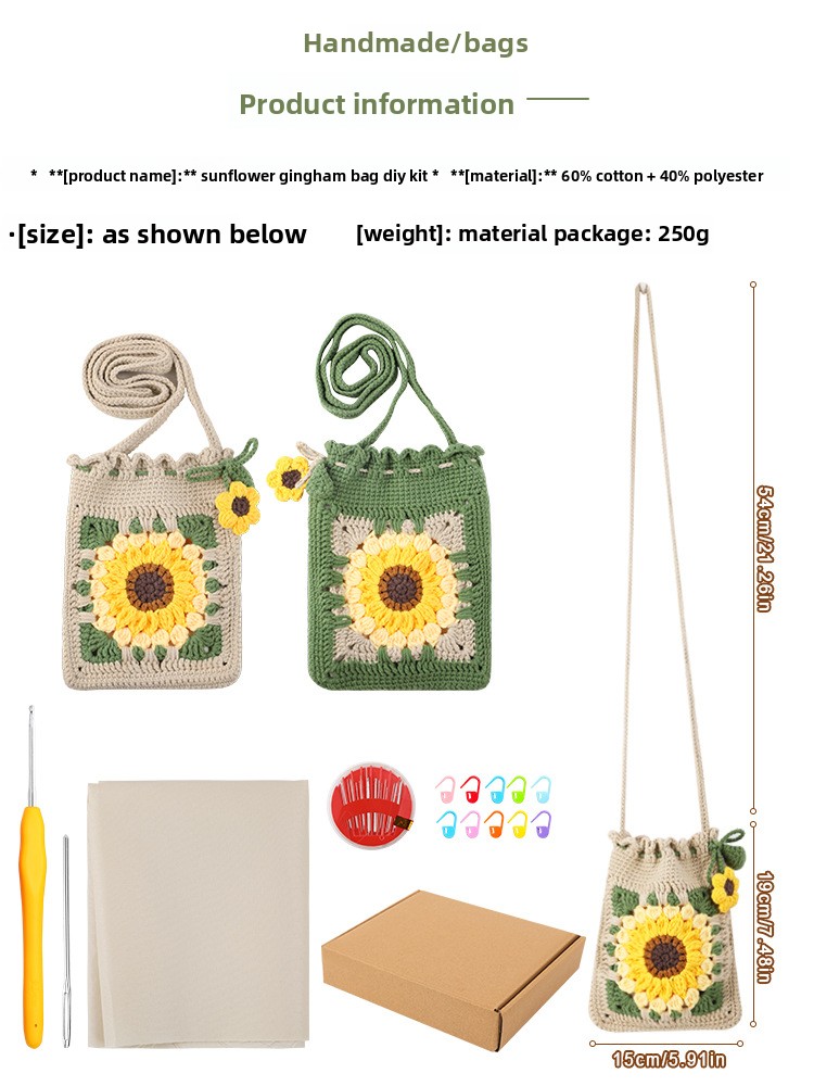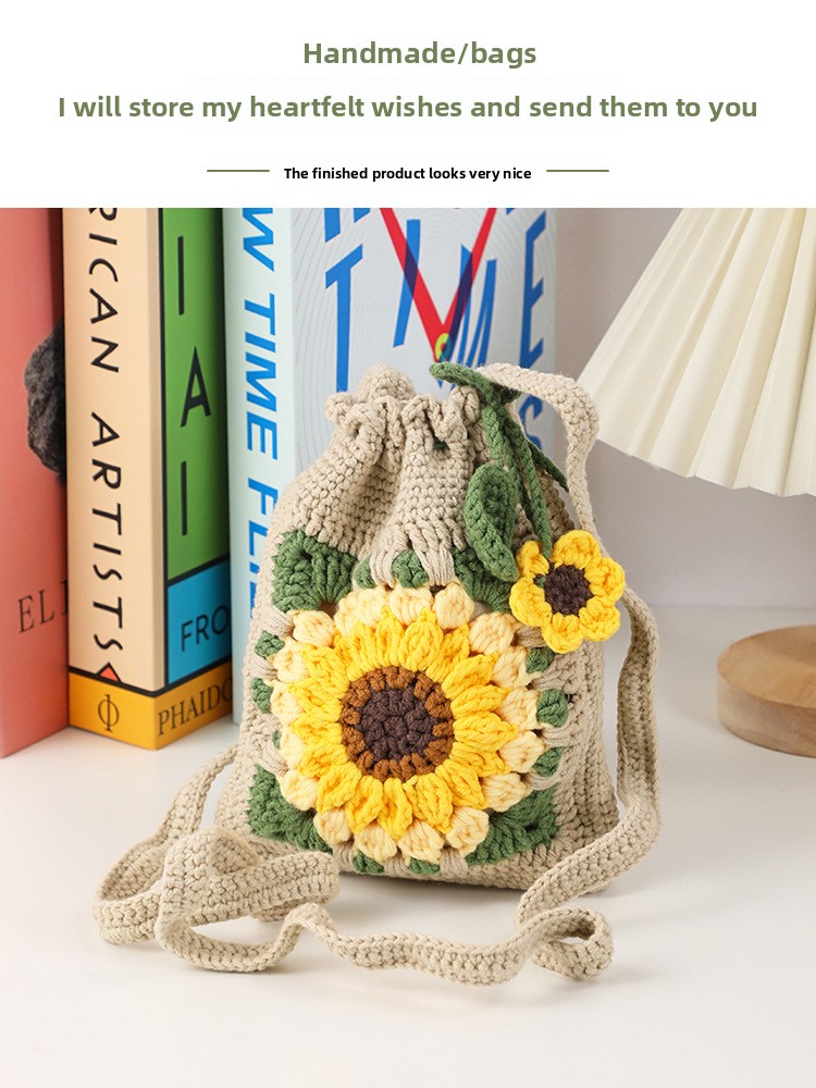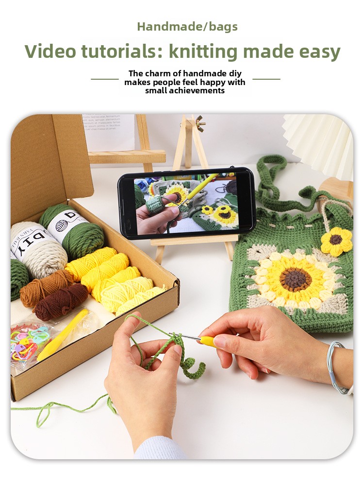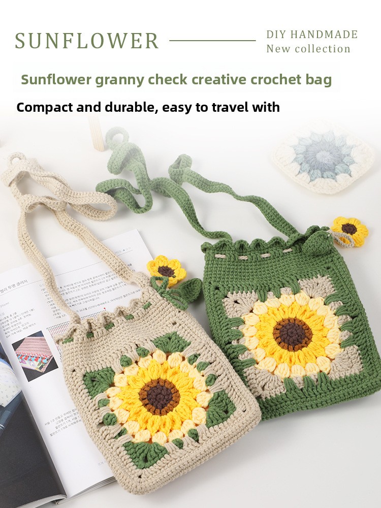DIY Creativity: Complete crochet kit for handmade sunflower bag accessories, fostering creative expression and personalized crafting.