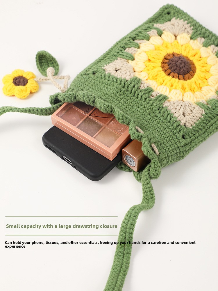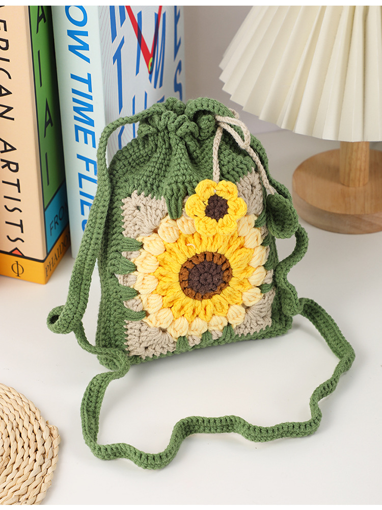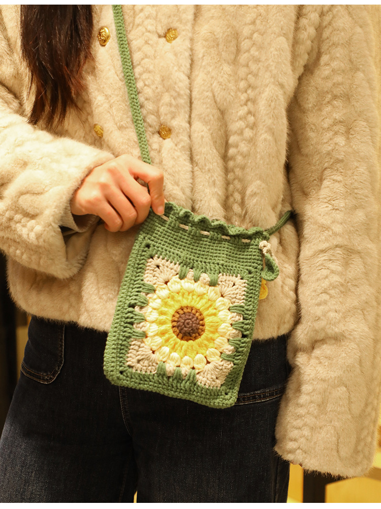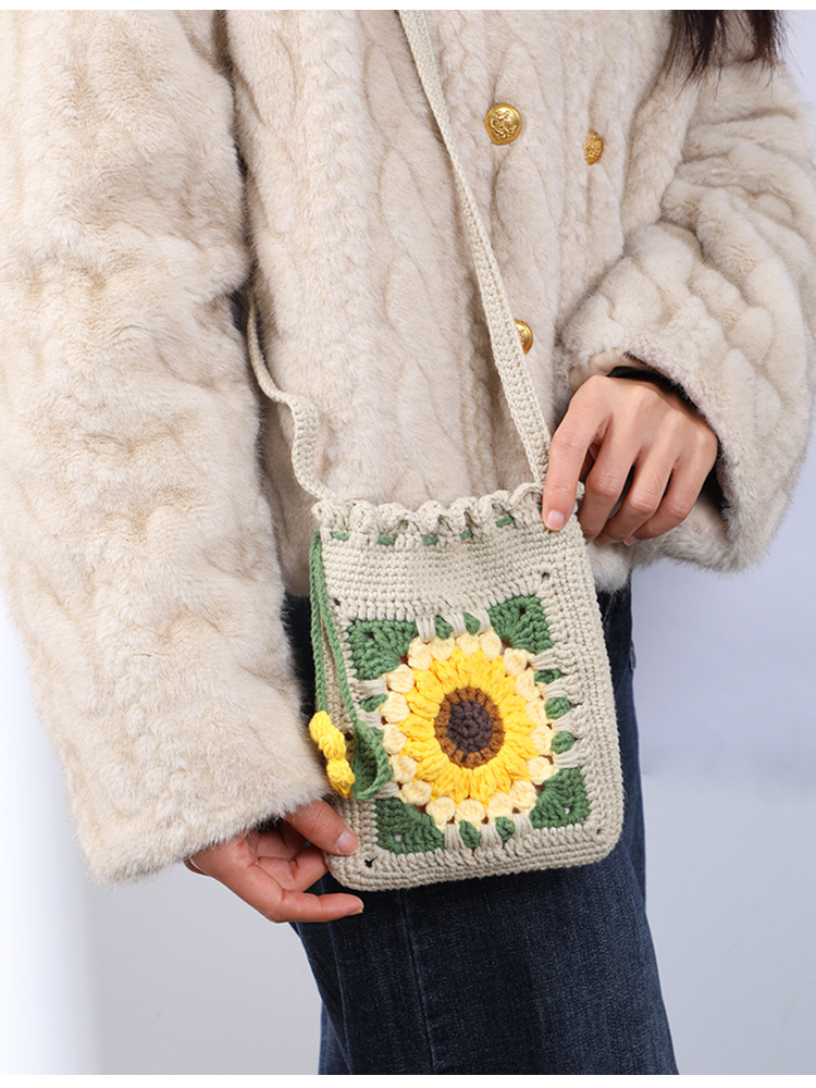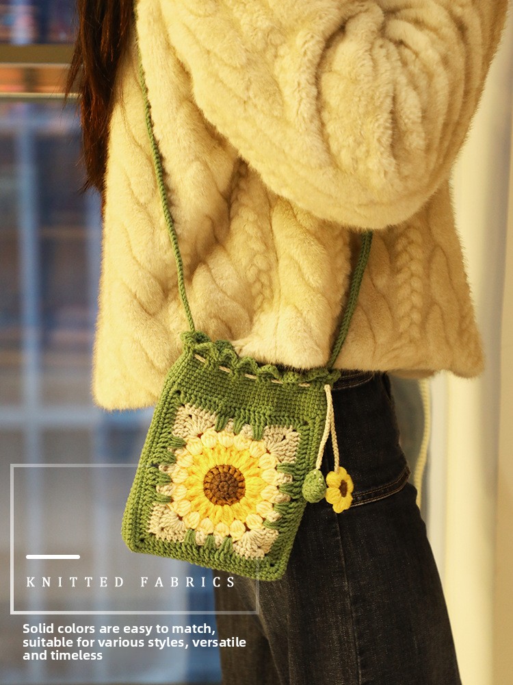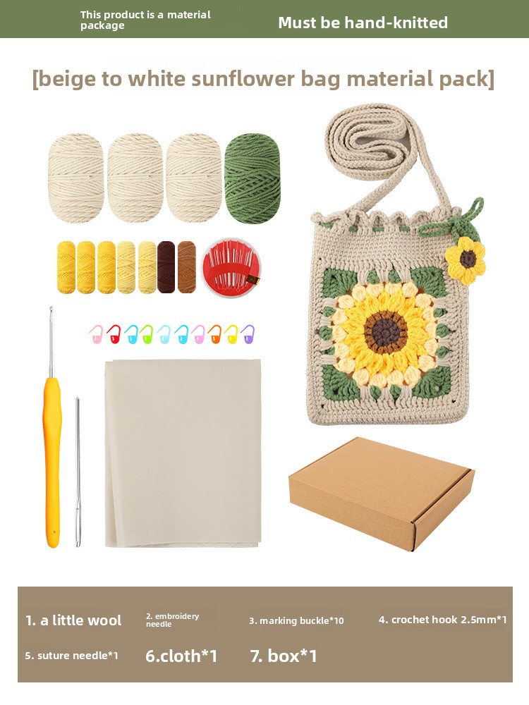 DIY Creativity: Complete crochet kit for handmade sunflower bag accessories, fostering creative expression and personalized crafting.